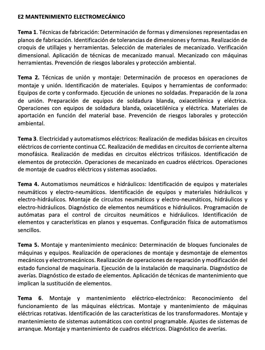 Temario E2 MANTENIMIENTO ELECTROMECÁNICO (+Test)