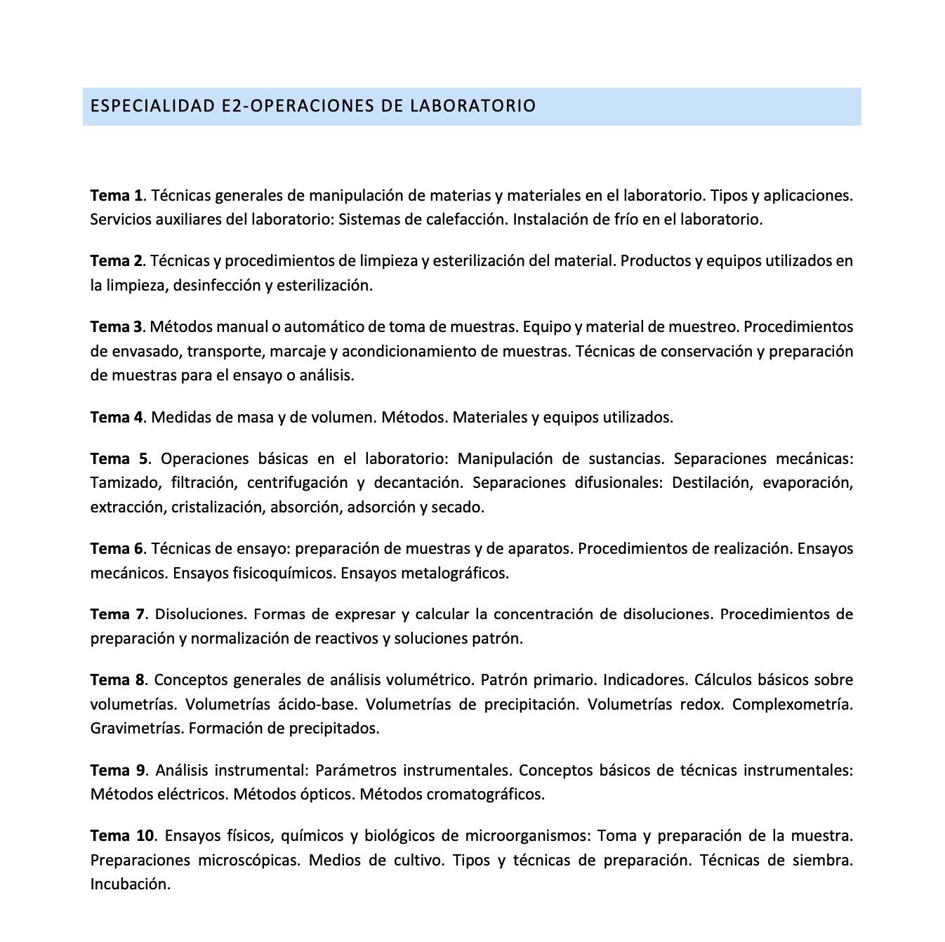 Temario E2 OPERACIONES DE LABORATORIO (+Test)
