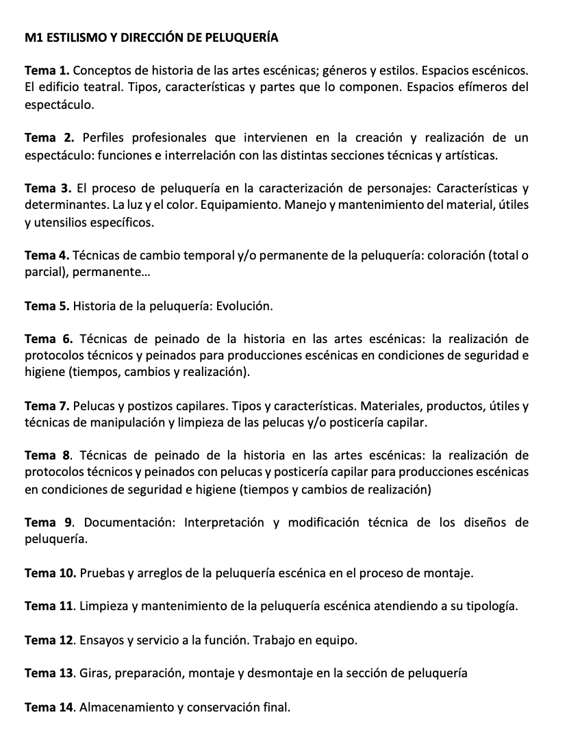 Este temario, formado por 14 temas, ha sido diseñado con el propósito expreso de ofrecer un material completo y profundamente didáctico que permita a los candidatos enfrentarse con éxito a la fase de oposición del proceso selectivo de la especialidad M1 – ESTILISMO Y DIRECCIÓN DE PELUQUERÍA para ingreso por acceso libre y acceso por promoción interna como personal laboral fijo sujeto al IV Convenio colectivo único para el personal laboral de la Administración General del Estado.