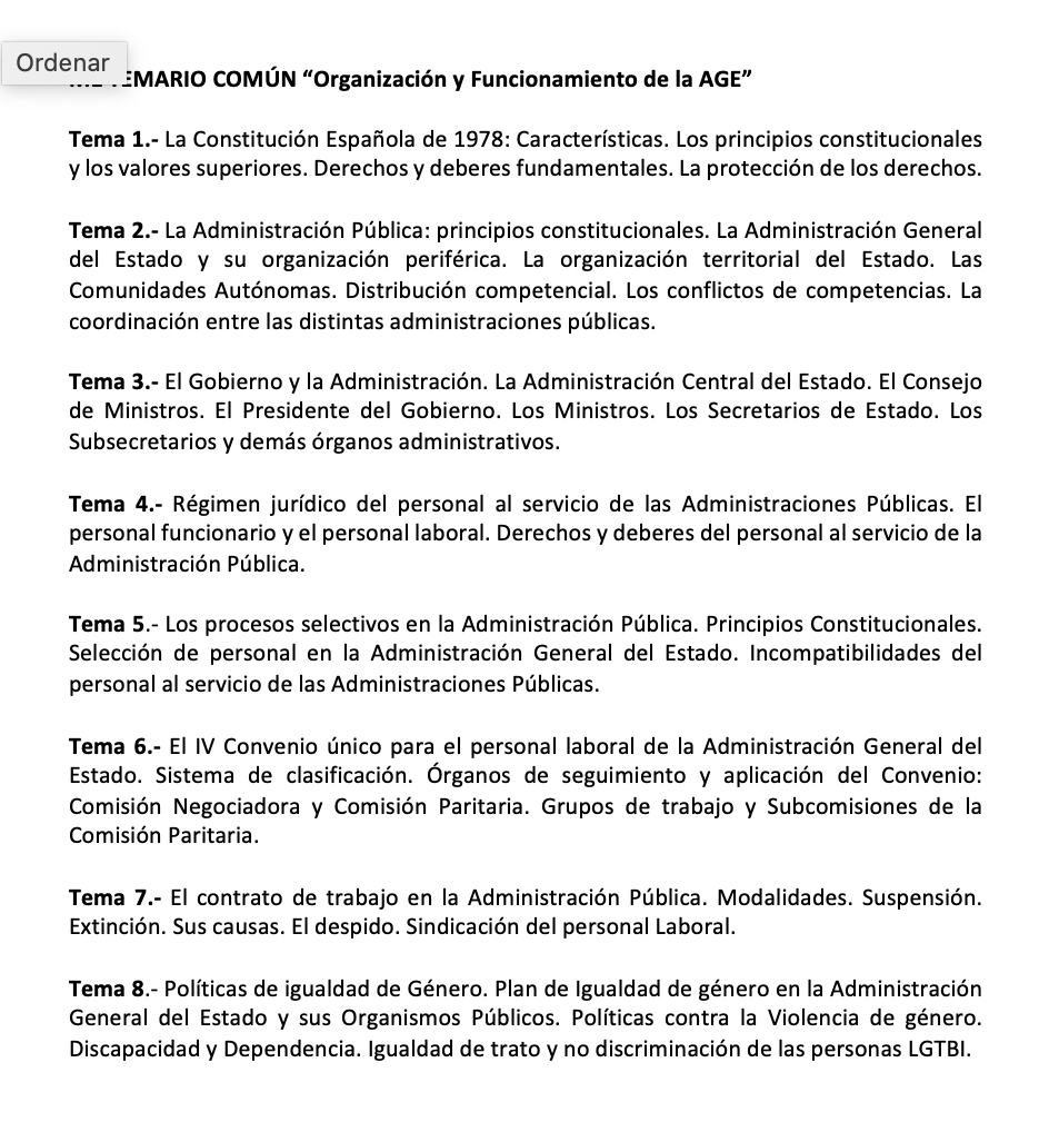 M1 TEMARIO COMÚN “Organización y Funcionamiento de la AGE” (+Test)