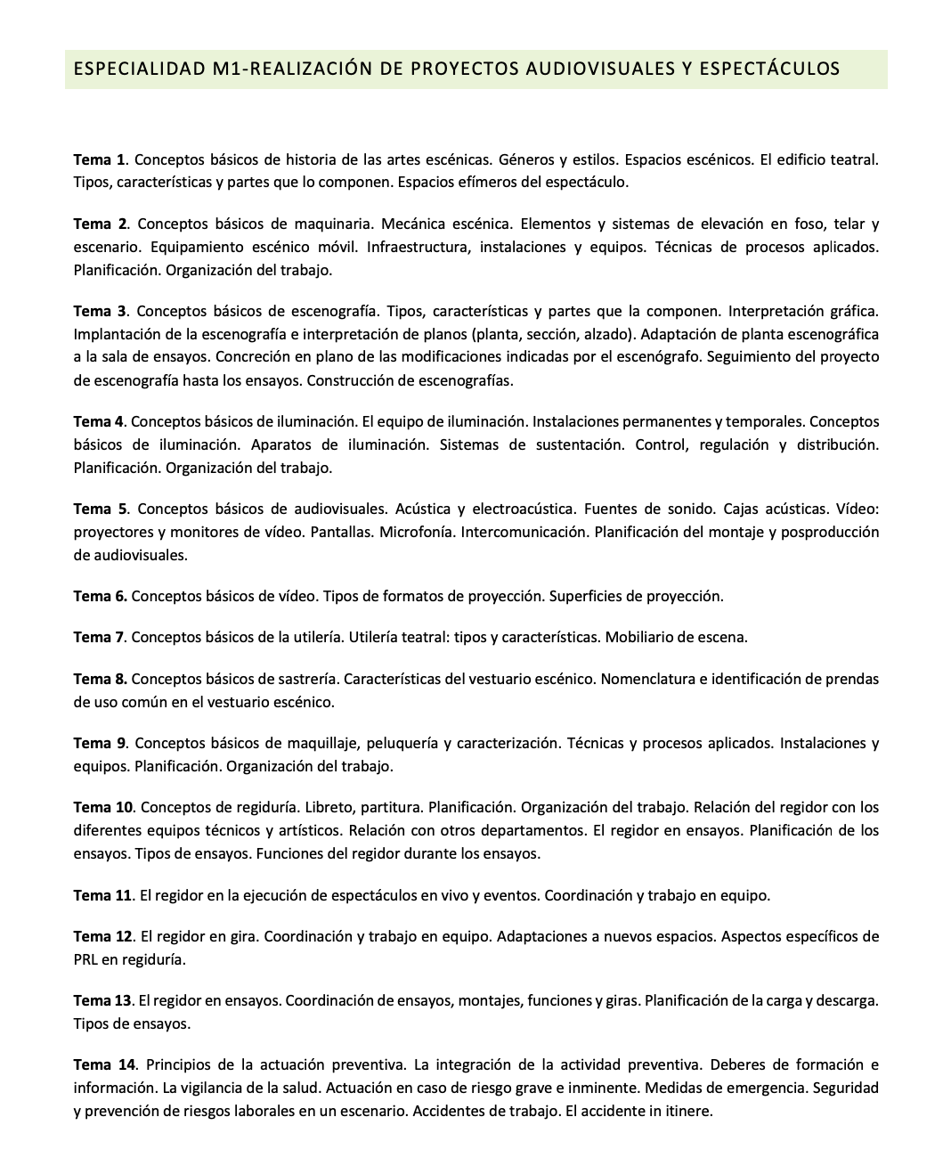 ¡Prepárate para superar con éxito tu oposición con el temario de www.temariosdeoposicion.es! Nuestra oferta especializada se centra en la Especialidad M1 REALIZACIÓN DE PROYECTOS AUDIOVISUALES Y ESPECTÁCULOS. Este temario ha sido meticulosamente preparado y actualizado según la Resolución de la Secretaría de Estado de Función Pública y se ajusta completamente a los requisitos de la OEP.
