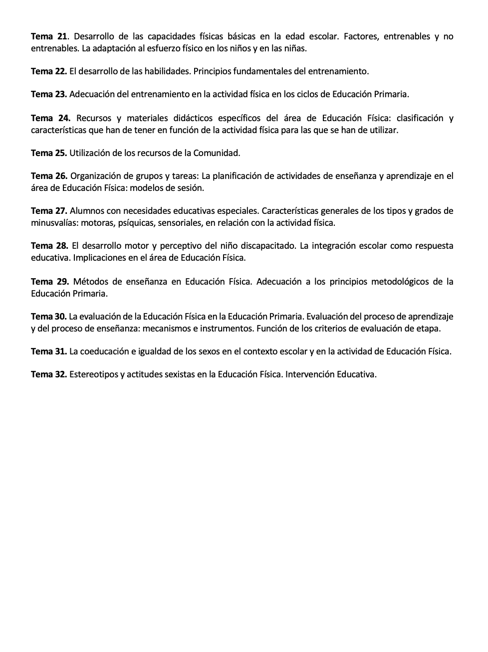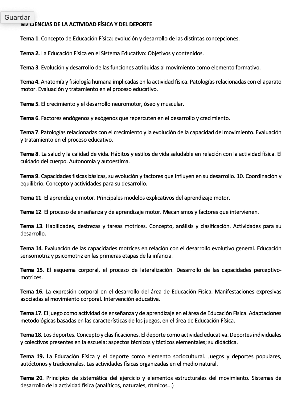 Este temario, formado por 32 temas, ha sido diseñado con el propósito expreso de ofrecer un material completo y profundamente didáctico que permita a los candidatos enfrentarse con éxito a la fase de oposición del proceso selectivo de la especialidad M2 – CIENCIAS DE LA ACTIVIDAD FÍSICA Y DEL DEPORTE para ingreso por acceso libre y acceso por promoción interna como personal laboral fijo sujeto al IV Convenio colectivo único para el personal laboral de la Administración General del Estado.