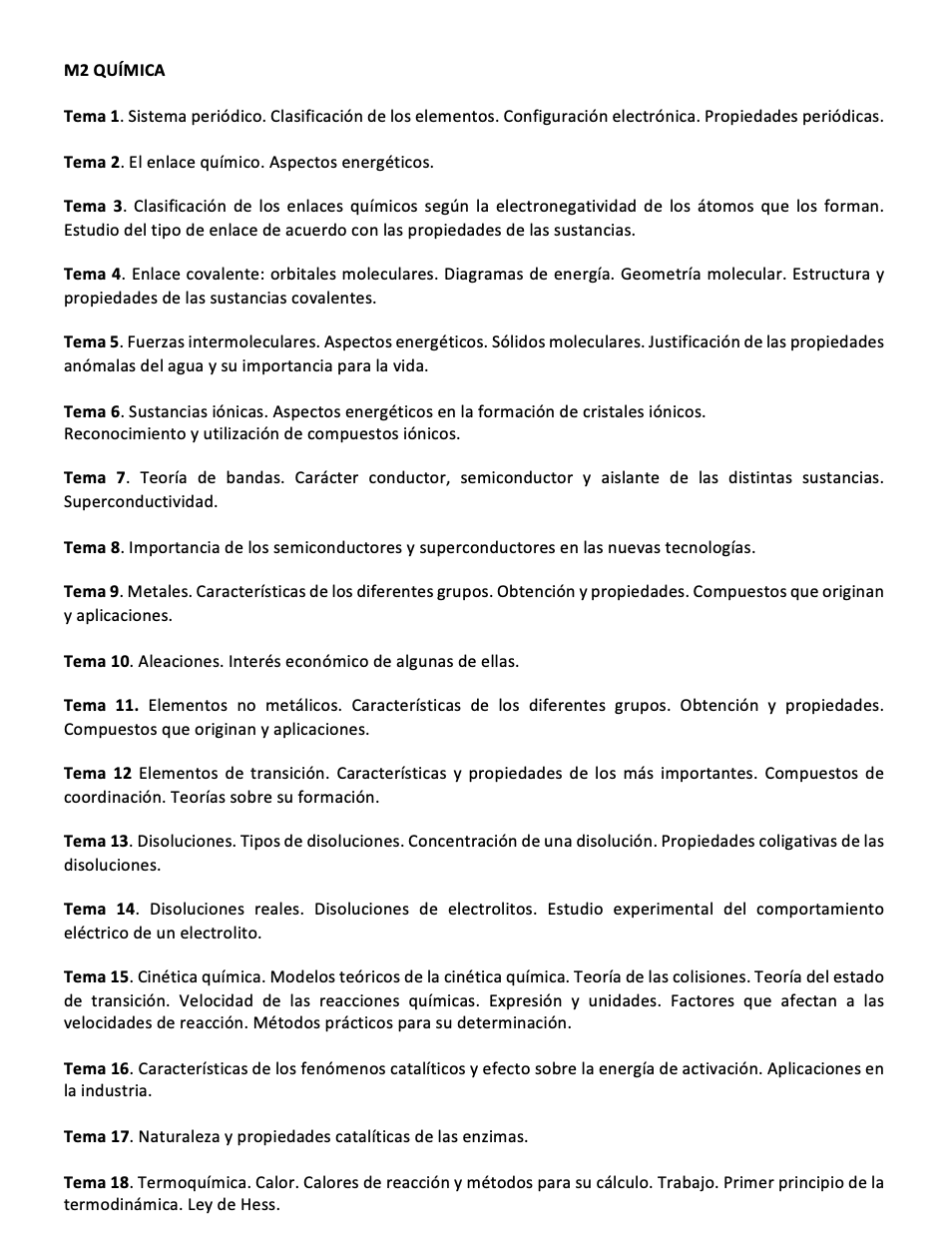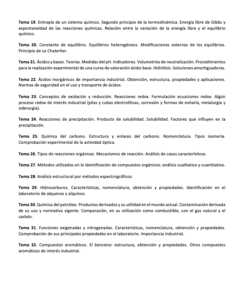 Este temario, formado por 32 temas, ha sido diseñado con el propósito expreso de ofrecer un material completo y profundamente didáctico que permita a los candidatos enfrentarse con éxito a la fase de oposición del proceso selectivo de la especialidad M2 – QUÍMICA para ingreso por acceso libre y acceso por promoción interna como personal laboral fijo sujeto al IV Convenio colectivo único para el personal laboral de la Administración General del Estado.