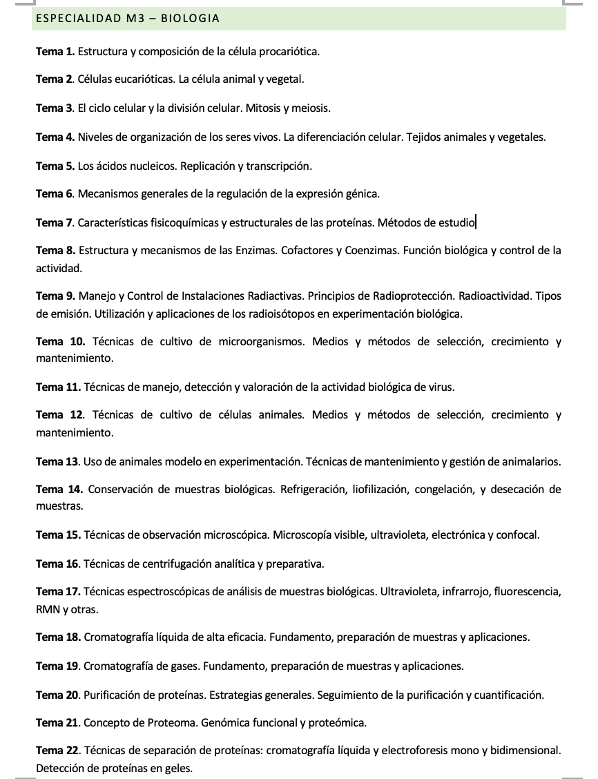 Este temario, formado por 45 temas, ha sido diseñado con el propósito expreso de ofrecer un material completo y profundamente didáctico que permita a los candidatos enfrentarse con éxito al proceso selectivo de la especialidad M3 – BIOLOGÍA, en línea con la nueva convocatoria del Ministerio de Ciencia, Innovación y Universidades (Resolución de 2 de octubre de 2025, de la Subsecretaría). Su organización favorece un estudio eficiente, con contenidos estructurados para que avances con seguridad.