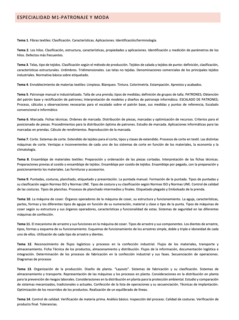 TEST DE REFUERZO Especialidad M1 PATRONAJE Y MODA + Temario M1 - PATRONAJE Y MODA